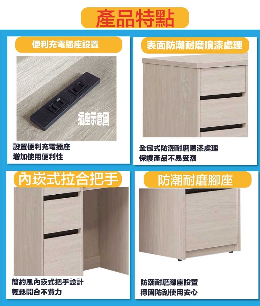 防蛀木心板+防潮耐磨底座(可調高低水平)等安心材質製造