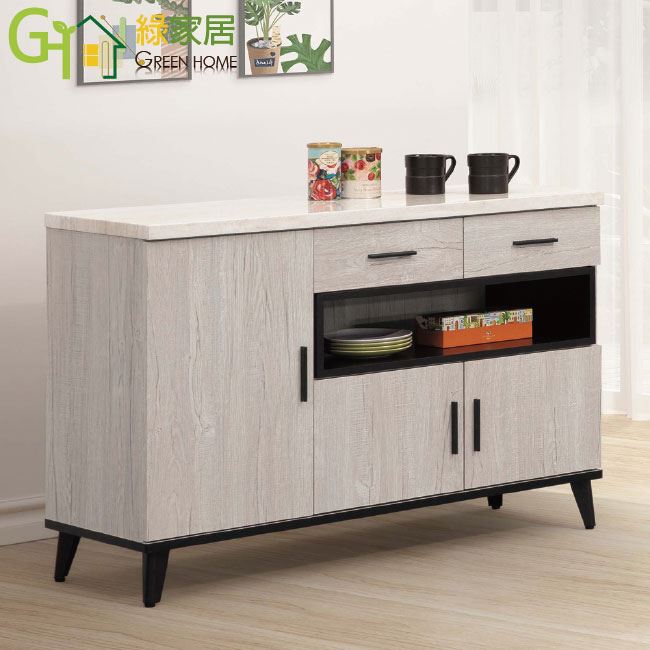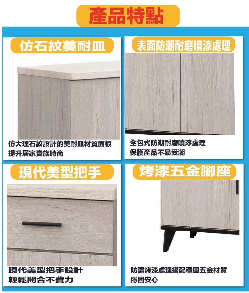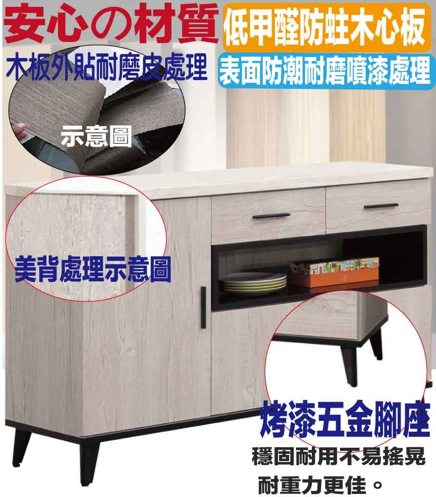 【綠家居】凱曼雙色4尺三門二抽低餐櫃(仿石紋耐磨美耐皿桌面板)