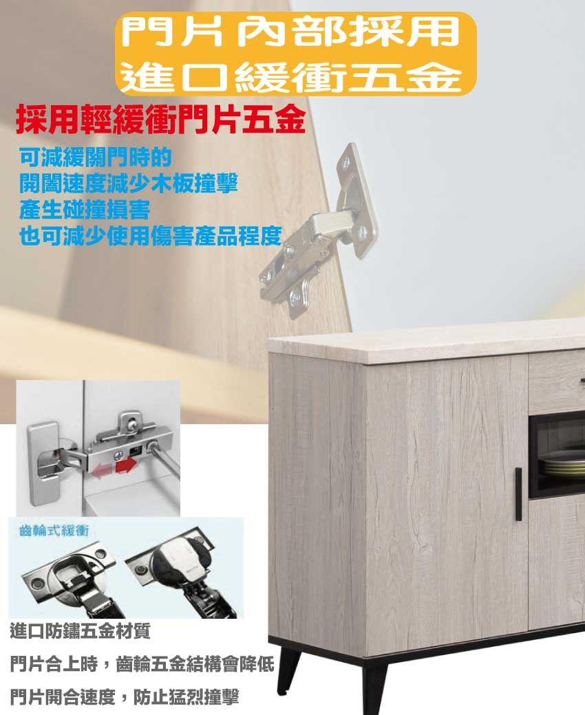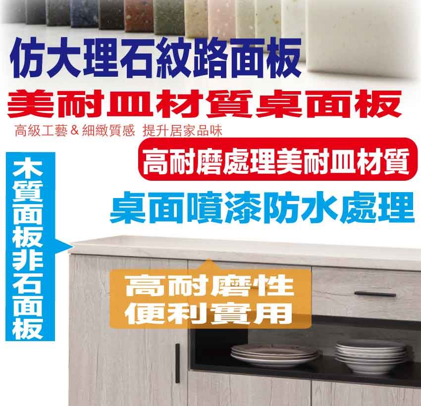 材質:防蛀木心板+仿大理石紋路耐磨美耐皿面板+烤漆金屬腳座+防夾手緩衝門片五金