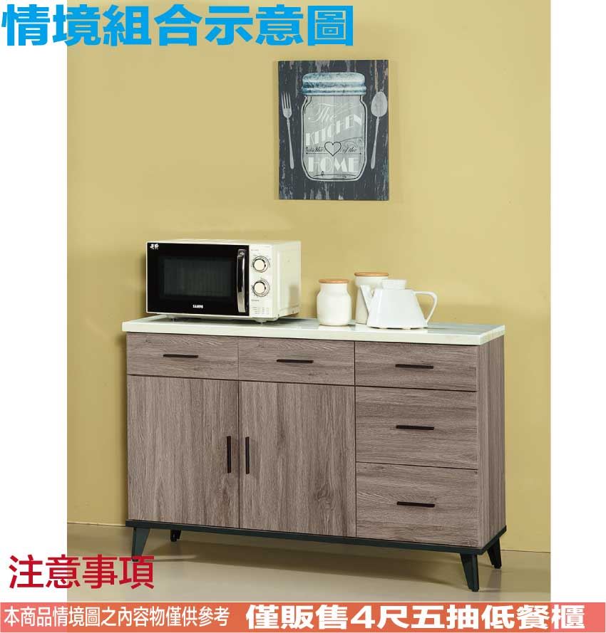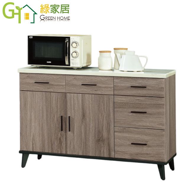 【綠家居】莉曼4尺二門五抽低餐櫃(仿石紋耐磨美耐皿桌面板)