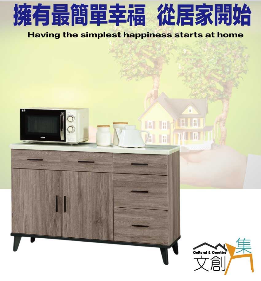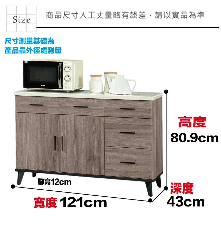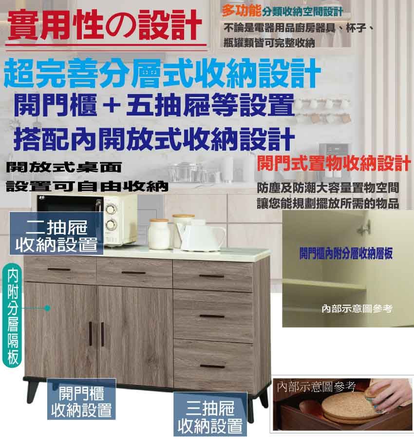 - 產品名稱:【綠家居】莉曼4尺二門五抽低餐櫃(仿石紋耐磨美耐皿桌面板)
