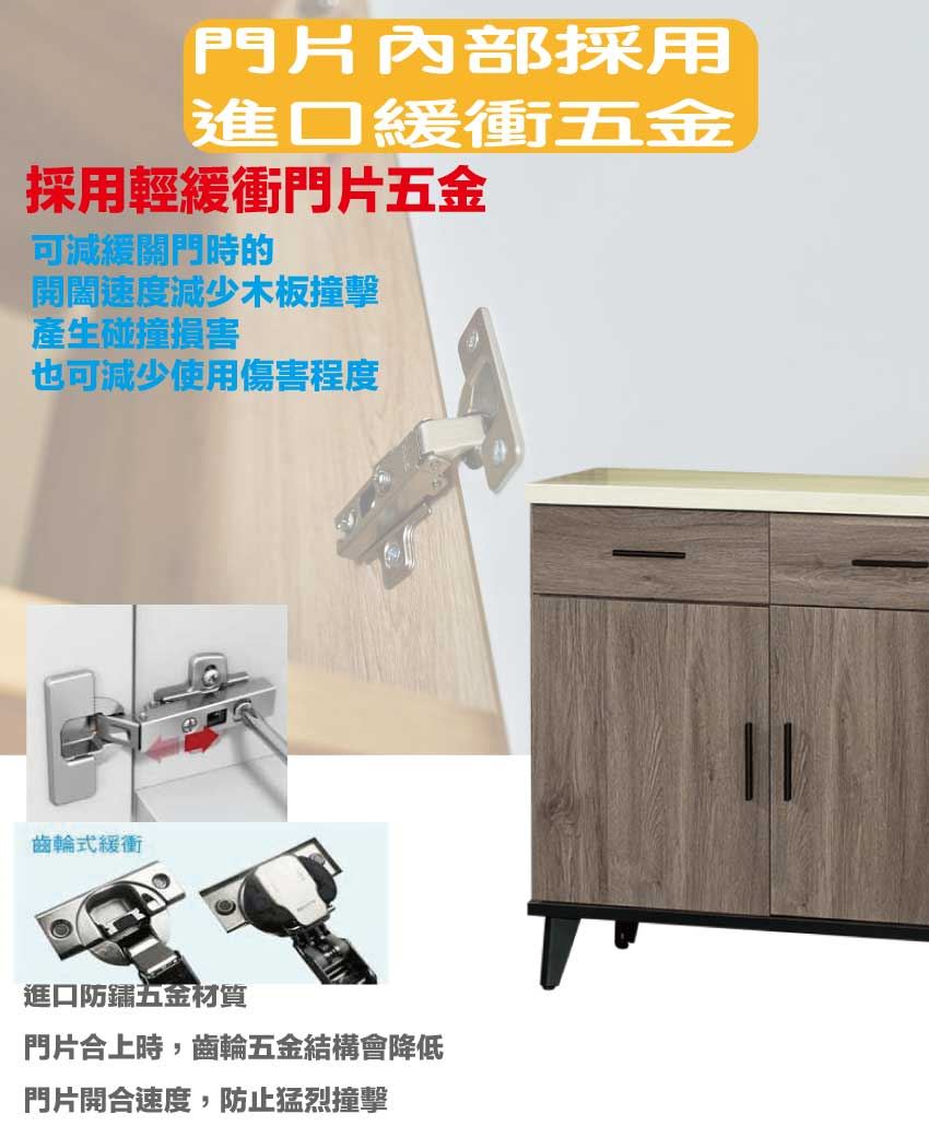 材質:防蛀木心板+仿大理石紋路耐磨美耐皿面板+烤漆金屬腳座+防夾手緩衝門片五金