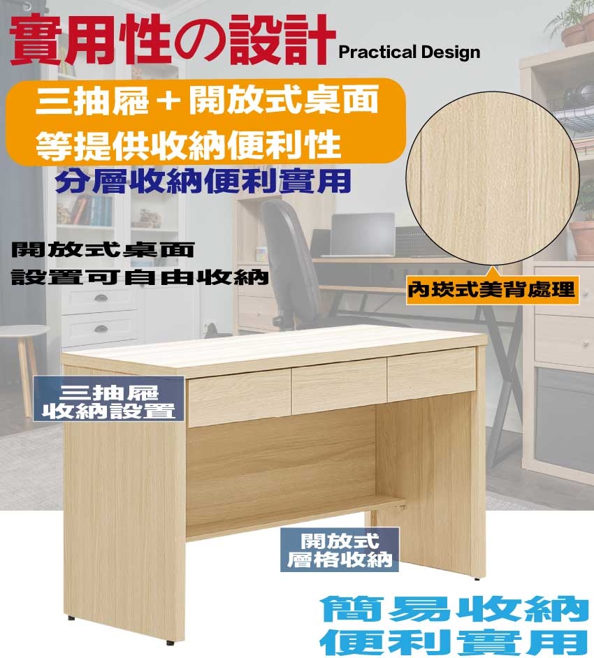 - 產品名稱:【綠家居】米科4尺三抽書桌
