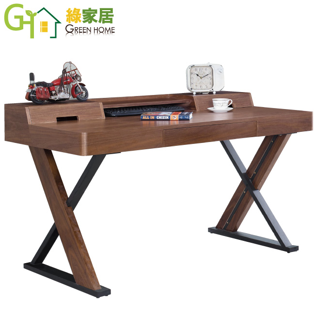 【綠家居】納坎 時尚4.7尺胡桃木紋書桌/電腦桌