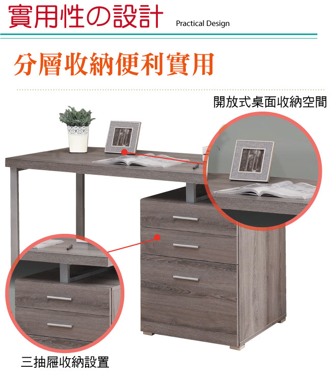 三抽屜+開放式桌面等收納設計,輕鬆不費力,讓您家中不凌亂
