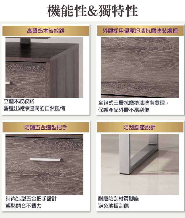 防蛀木心板+防鏽鍍烙腳座+鋼珠滑軌結構等材質,堅固耐用,不易損壞
