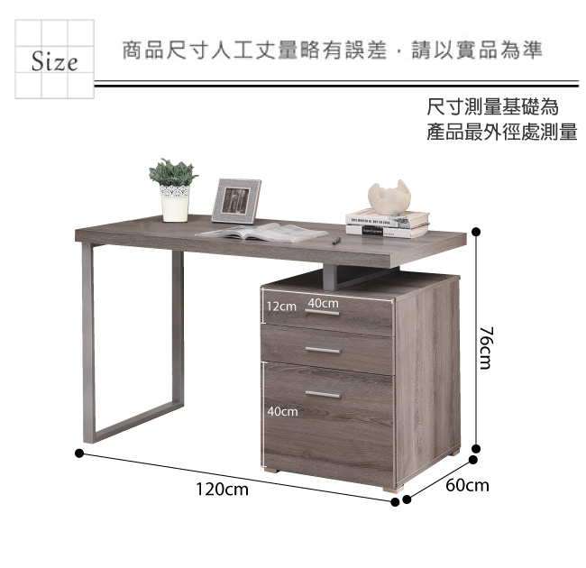 書桌:(寬)120 x(深)60 x(高)76/公分