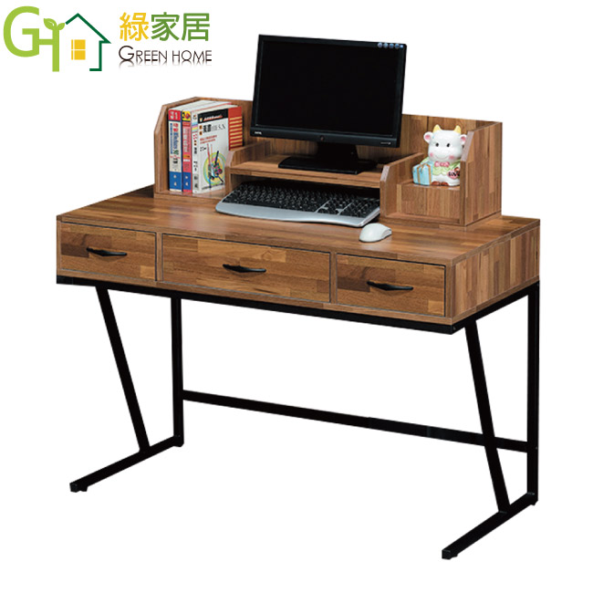【綠家居】鄉村 多功能4尺三抽書桌組合(二色可選)