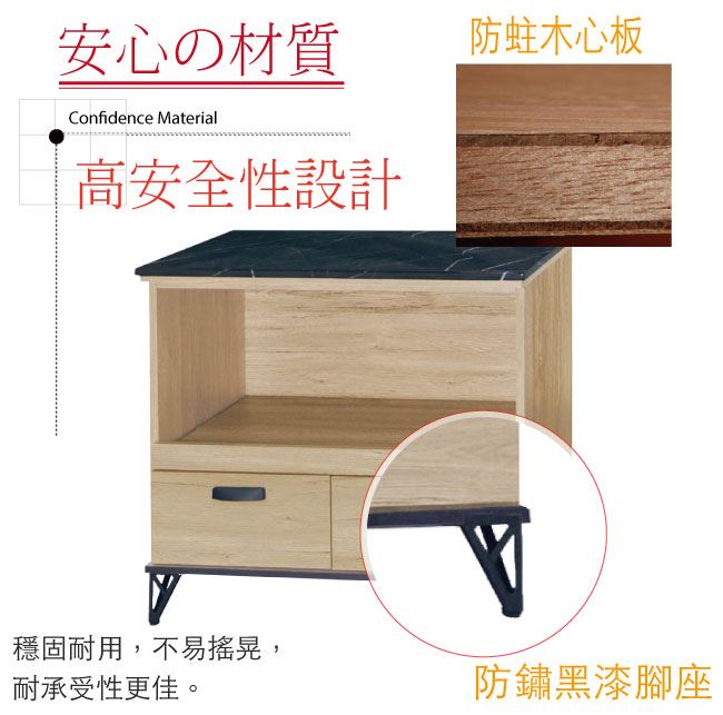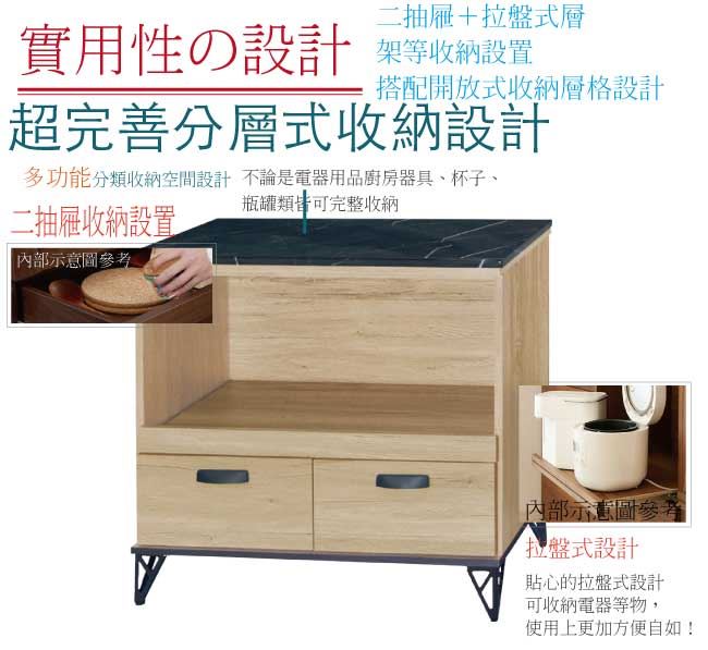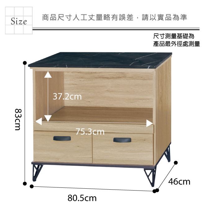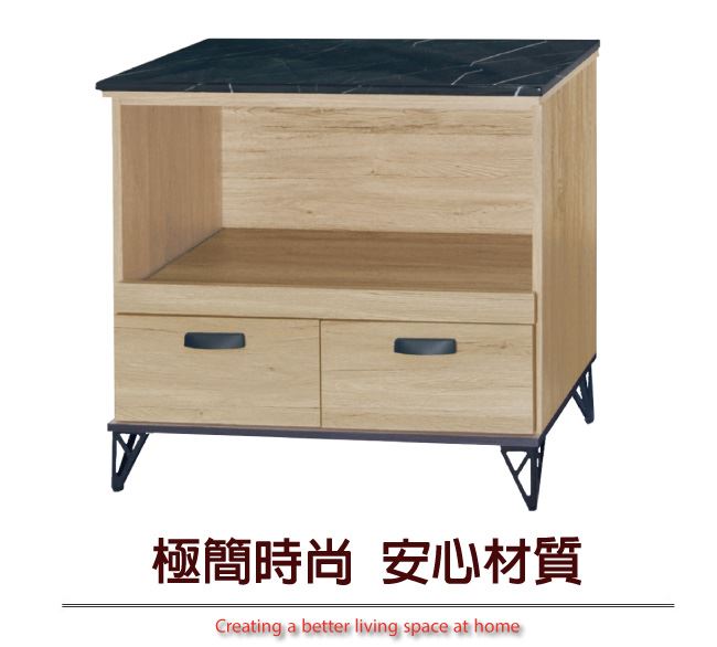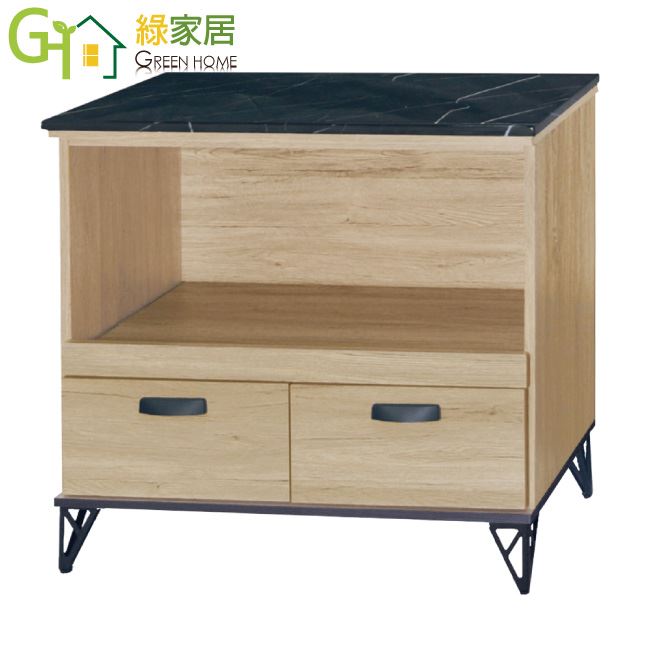 材質 | ◆產品名稱: 【綠家居】哈立爾 橡木紋2.7尺拉盤雲紋石面餐櫃 尺寸:(寬)80.5x(深)46x(高)83/公分 ◆材質: 材質:防蛀木心板+黑鐵砂腳座+五金滑軌結構+12mm雲紋石面板+防夾手緩衝門片五金 噴漆:防潮耐磨噴漆處理