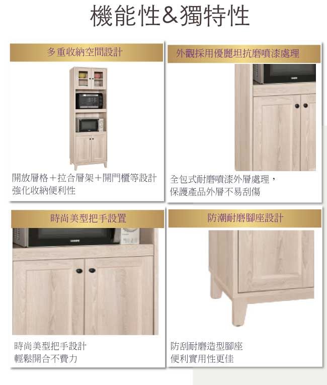 【綠家居】馬拉提 淺橡2尺四門高餐櫃/收納櫃