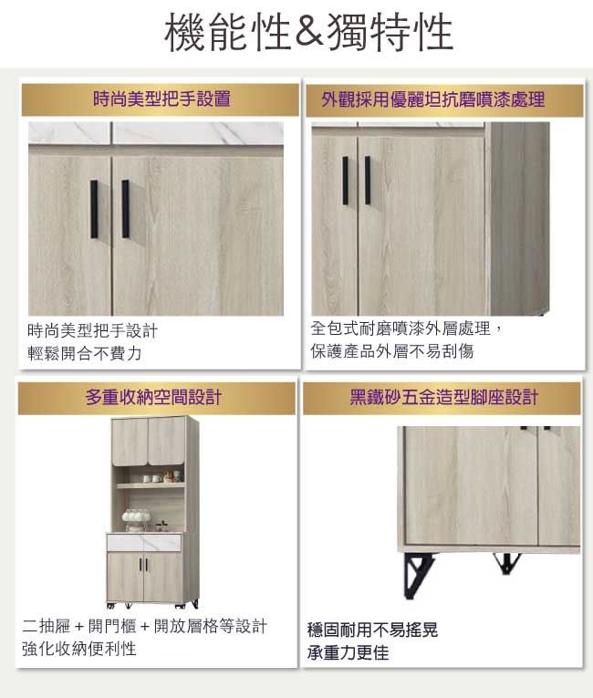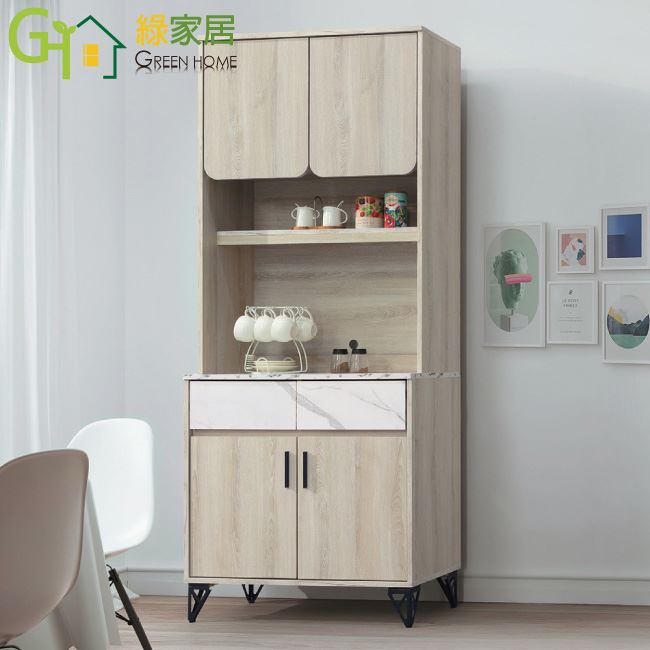 【綠家居】艾安德 雙色2.7尺四門二抽餐櫃組合
