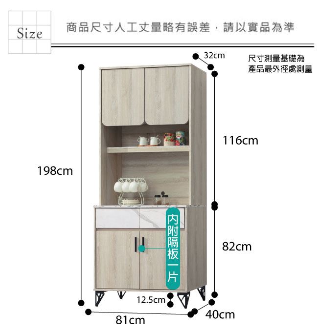 材質 | ◆產品名稱: 【綠家居】艾安德 雙色2.7尺四門二抽餐櫃組合 尺寸:(寬)81x(深)40x(高)198/公分 ◆材質: 材質:防蛀木心板+黑鐵砂腳座+五金滑軌結構+仿雲紋石面紋路木質面板 噴漆:防潮耐磨噴漆處理