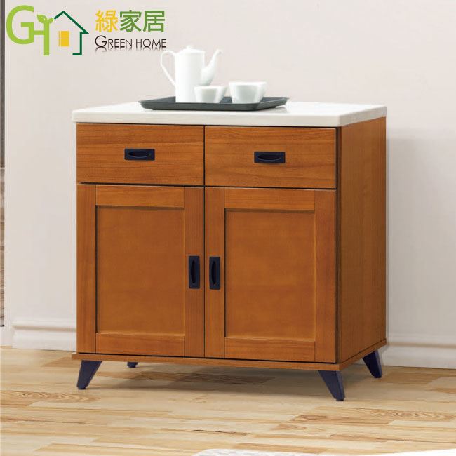 【綠家居】辛卡 時尚2.7尺雲紋石面餐櫃/收納櫃