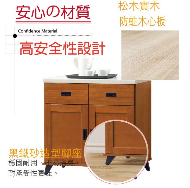 商品 介紹 | 【綠家居】辛卡 時尚2.7尺雲紋石面餐櫃/收納櫃 樟木紋色系+現代簡約風格+安心材質製造,整體採用松木實木+防蛀木心板+黑鐵砂腳座+防夾手緩衝門片五金+五金滑軌結構+2cm雲紋石面板等安心材質製造,外層採用全包式防潮耐磨噴漆處理搭配採用開門櫃+二抽屜+內開放式收納層格等收納空間設計,全由專人配送到家,專業安心服務,替你省下更多時間! 【商品特色】 樟木紋色系+現代簡約風格+安心材質製造,使用放心+搭配居家更便利 採用松木實木+防蛀木心板+黑鐵砂腳座+防夾手緩衝門片五金+五金滑軌結構+2cm雲紋石面板等安心材質製造 採用開門櫃+二抽屜+內開放式收納層格等收納空間設計 此商品不需要DIY組立,此商品為組立後之成品 品質保證、專業設計、貼心服務 全由專人配送到家,專業安心服務,替您省下更多時間 |
