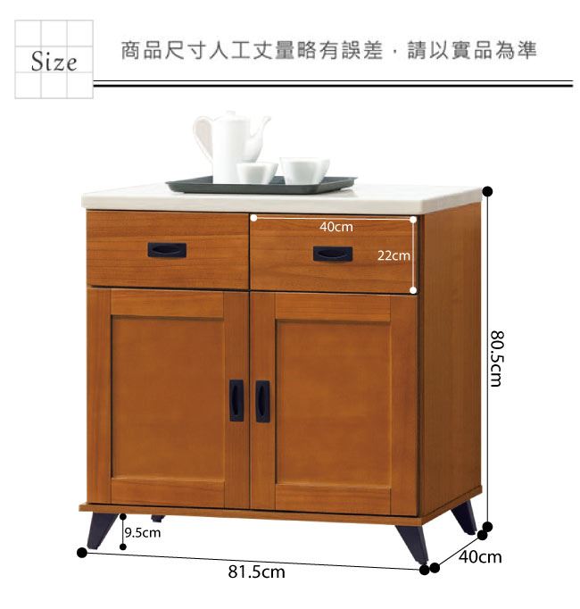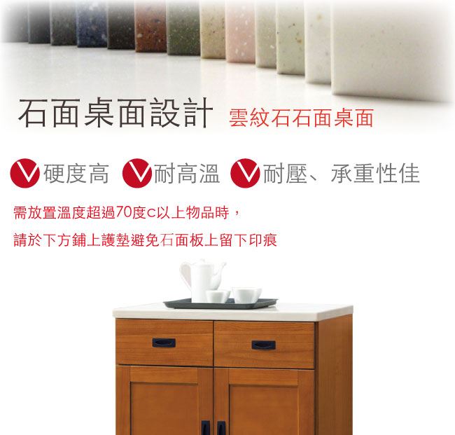 材質 | ◆產品名稱: 【綠家居】辛卡 時尚2.7尺雲紋石面餐櫃/收納櫃 尺寸:(寬)81.5x(深)40x(高)80.5公分 ◆材質: 材質:松木實木+防蛀木心板+黑鐵砂腳座+防夾手緩衝門片五金+五金滑軌結構+2cm雲紋石面板 外層採用全包式防潮耐磨噴漆處理