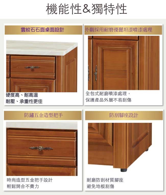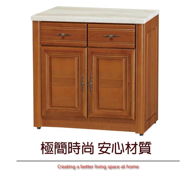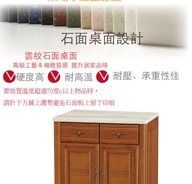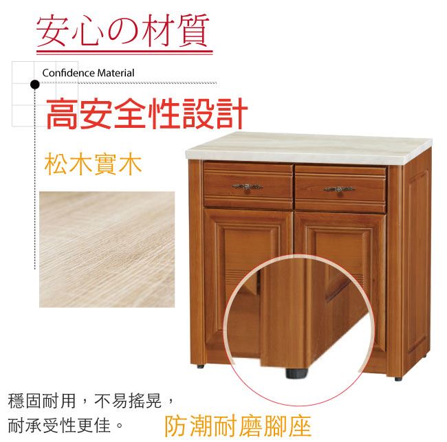 材質 | ◆產品名稱: 【綠家居】梅勒 時尚2.8尺雲紋石面餐櫃/收納櫃 尺寸:(寬)85.5x(深)45.5x(高)82公分 ◆材質: 材質:松木實木+防潮耐磨腳座+五金滑軌結構+2cm雲紋石面板 外層採用全包式防潮耐磨噴漆處理