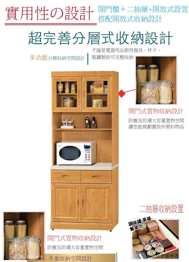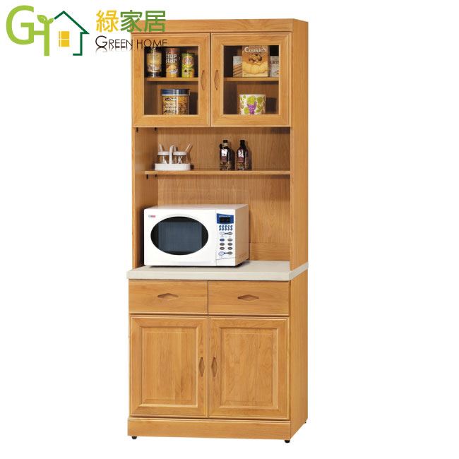 【綠家居】古特菲 赤楊木2.7尺雲紋石面高餐櫃組合