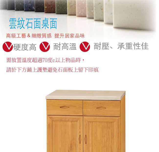 商品 介紹 | 【綠家居】古特菲 赤楊木2.7尺雲紋石面高餐櫃組合 赤楊木紋色系+現代簡約風格+安心材質製造,整體採用松木實木+防蛀木心板+五金滑軌結構+防潮耐磨腳座+2cm雲紋石面桌面板等安心材質製造,外層採用優利坦全包式耐磨噴漆處理搭配開門櫃+二抽屜+開放式層格等收納設計,全由專人配送到家,專業安心服務,替你省下更多時間! 【商品特色】 赤楊木紋色系+現代簡約風格+安心材質製造,使用放心+搭配居家更便利 採用松木實木+防蛀木心板+五金滑軌結構+防潮耐磨腳座+2cm雲紋石面桌面板等安心材質製造 開門櫃+二抽屜+開放式層格等收納設計 品質保證、專業設計、貼心服務 全由專人配送到家,專業安心服務,替您省下更多時 |