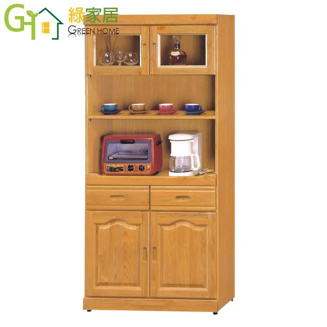 【綠家居】古特菲 赤楊木2.7尺四門二抽高餐櫃組合