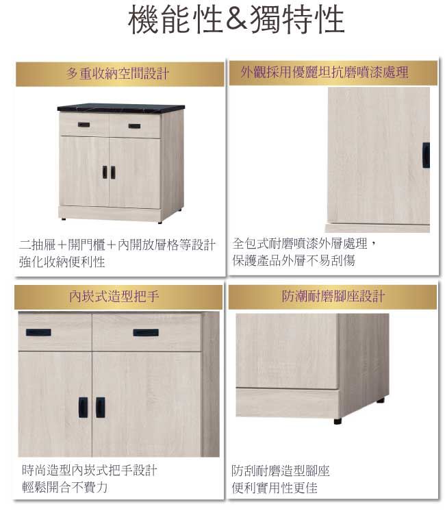 商品 介紹 | 【綠家居】羅馬特 淺橡2.7尺雲紋石面餐櫃 淺橡木紋色系+現代簡約風格+安心材質製造,整體採用防蛀木心板+五金滑軌結構+防潮耐磨腳座+防夾手緩衝門片五金+12m雲紋石面桌面板等安心材質製造,外層採用優利坦全包式耐磨噴漆處理搭配開門櫃+二抽屜+內開放式層格等收納設計,全由專人配送到家,專業安心服務,替你省下更多時間! 【商品特色】 淺橡木紋色系+現代簡約風格+安心材質製造,使用放心+搭配居家更便利 採用防蛀木心板+五金滑軌結構+防潮耐磨腳座+防夾手緩衝門片五金+12m雲紋石面桌面板等安心材質製造 開門櫃+二抽屜+內開放式層格等收納設計 品質保證、專業設計、貼心服務 全由專人配送到家,專業安心服務,替您省下更多時間 |