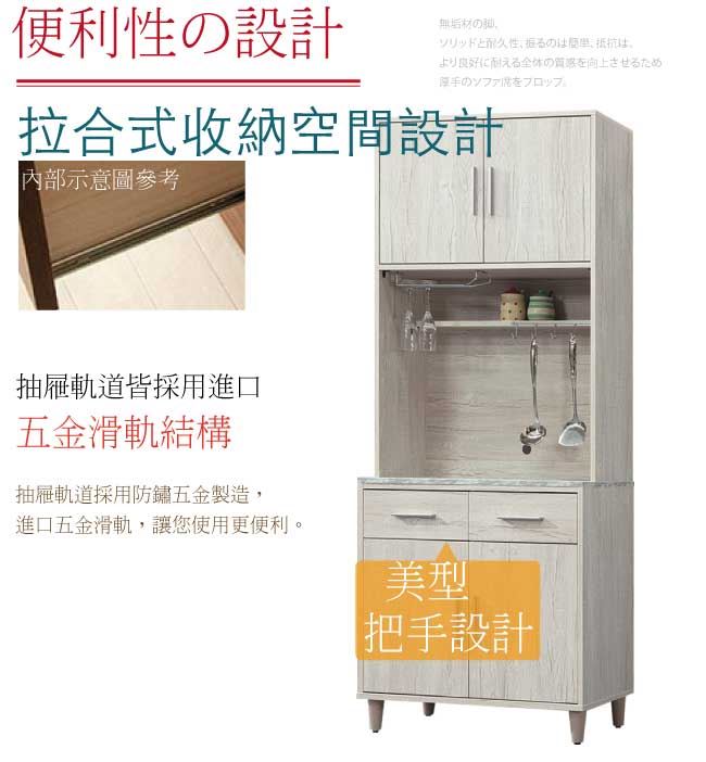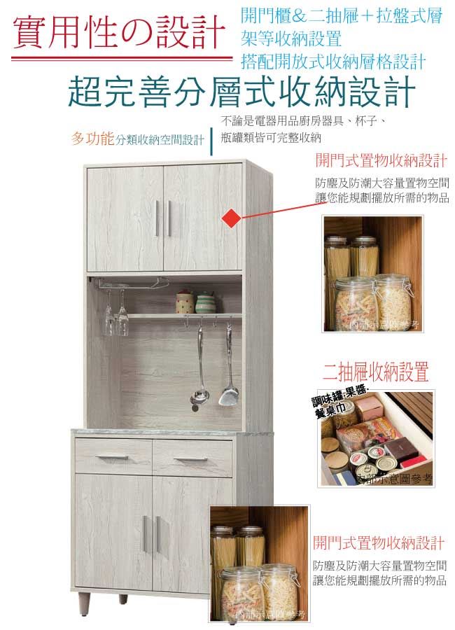 【綠家居】瑪波特 橡木紋2.7尺二門二抽高餐櫃組合