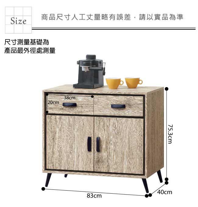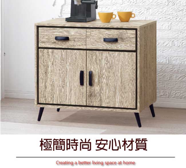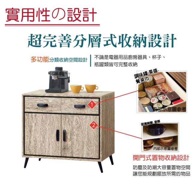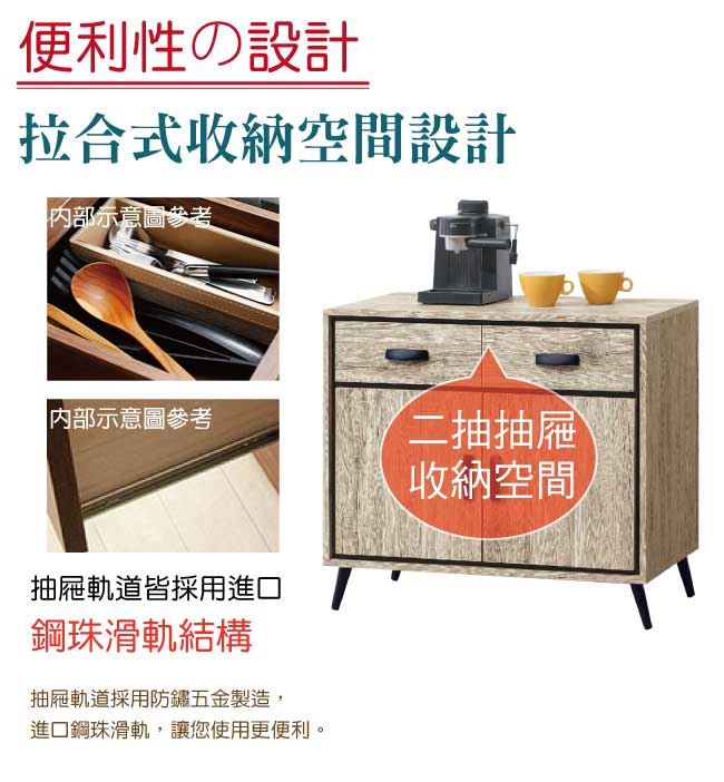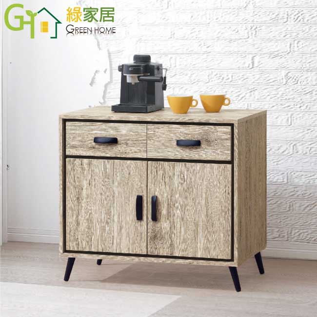 【綠家居】愛麗歐 現代2.8尺二門二抽餐櫃/收納櫃