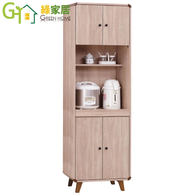 【綠家居】麥味登 橡木紋2尺四門高餐櫃/收納櫃