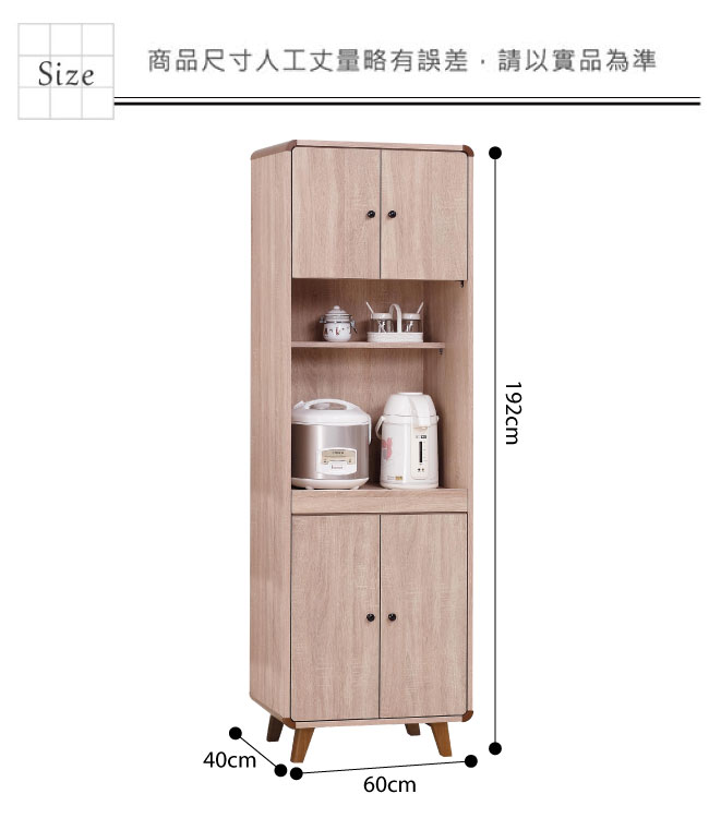 產品尺寸:(寬)60x (深)40x(高)192/ 公分
