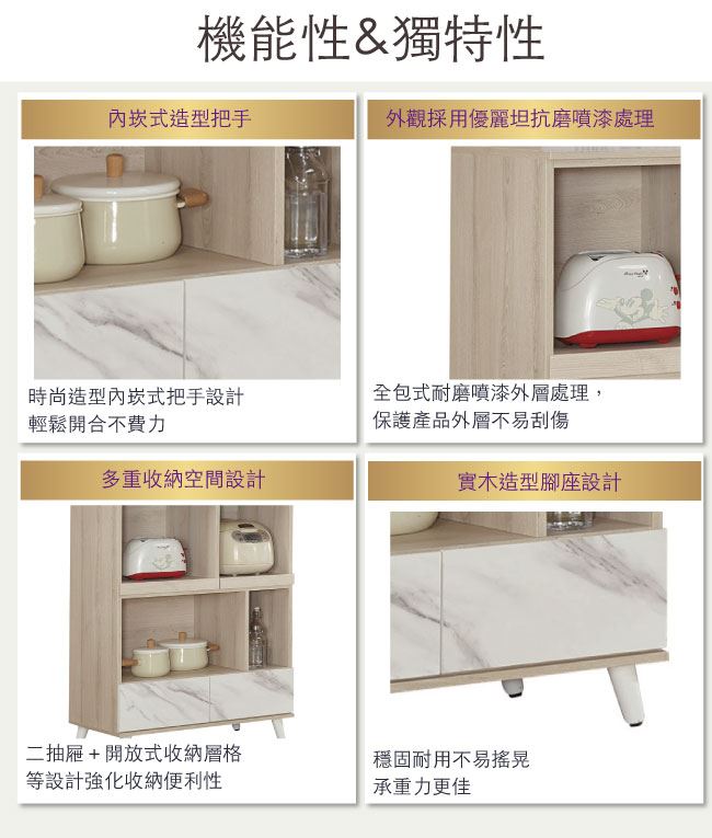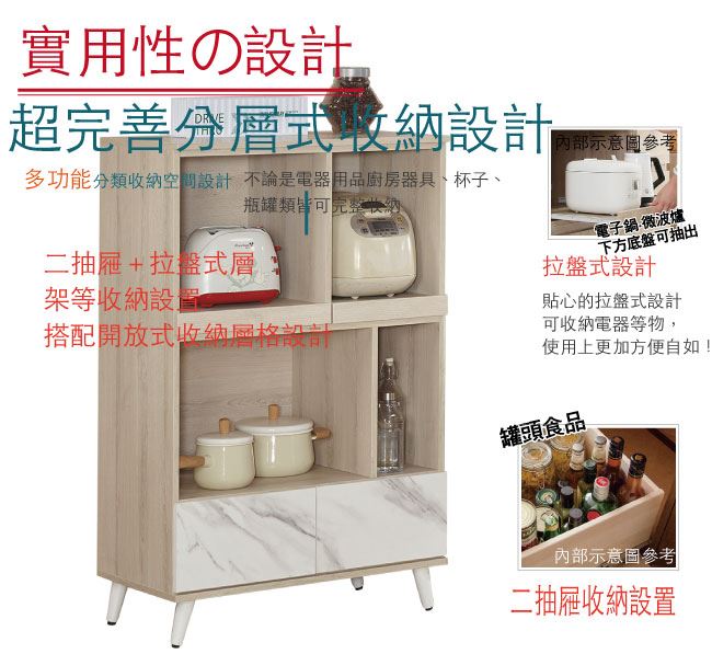 商品介紹 | 【綠家居】扎爾 雙色2.7尺二抽餐櫃/收納櫃 時尚雙色系+現代簡約風格+安心材質製造,整體採用防蛀木心板+五金滑軌結構+防潮實木腳座等安心材質製造,搭配採用二抽屜+拉合式層架+開放式收納等收納空間設計,全由專人配送到家,專業安心服務,替你省下更多時間! 【商品特色】 時尚雙色系+現代簡約風格+安心材質製造,使用放心+搭配居家更便利 採用防蛀木心板+五金滑軌結構+防潮實木腳座等安心材質製造 採用二抽屜+拉合式層架+開放式收納等收納空間設計 此商品不需要DIY組立,此商品為組立後之成品 品質保證、專業設計、貼心服務 全由專人配送到家,專業安心服務,替您省下更多時間 |