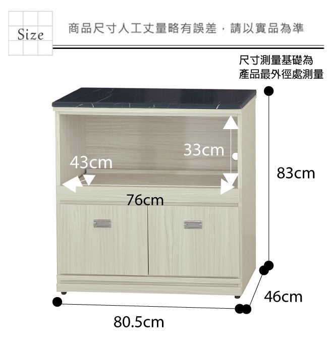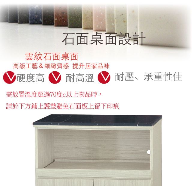 材質 | ◆產品名稱: 【綠家居】喬爾依 雪松木紋2.7尺拉盤雲紋石面餐櫃 尺寸:(寬)80.5(深)46x(高)83/公分 ◆材質: 材質:防蛀木心板+防潮耐磨腳座+五金滑軌結構+12mm雲紋石面板 噴漆:防潮耐磨噴漆處理