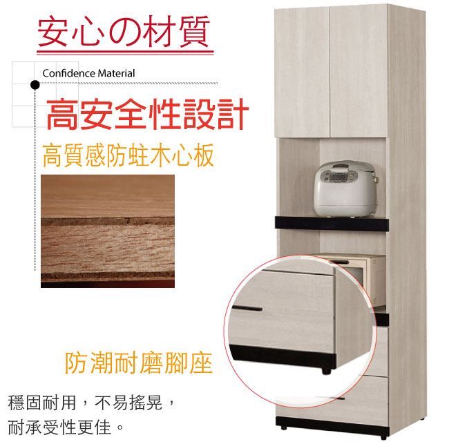 材質 | ◆產品名稱: 【綠家居】艾藍 時尚2尺二門二抽高餐櫃/收納櫃 尺寸:(寬)60x(深)40x(高)197/公分 ◆材質: 材質:防蛀木心板+防潮耐磨腳座+防夾手緩衝門片五金+五金滑軌結構 噴漆:防潮耐磨噴漆處理