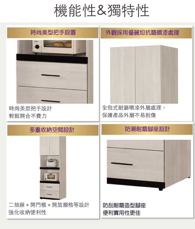 商品 介紹 | 【綠家居】艾藍 時尚2尺二門二抽高餐櫃/收納櫃 橡木紋色系+現代簡約風格+安心材質製造,整體採用防蛀木心板+防潮耐磨腳座+防夾手緩衝門片五金+五金滑軌結構等安心材質製造,產品外層採用防潮耐磨噴漆處理搭配採用開門櫃+二抽屜+拉合式層架+開放式收納層格等收納空間設計,全由專人配送到家,專業安心服務,替你省下更多時間! 【商品特色】 橡木紋色系+現代簡約風格+安心材質製造,使用放心+搭配居家更便利 採用防蛀木心板+防潮耐磨腳座+防夾手緩衝門片五金+五金滑軌結構等安心材質製造 產品外層採用防潮耐磨噴漆處理 搭配採用開門櫃+二抽屜+拉合式層架+開放式收納層格等收納空間設計 此商品不需要DIY組立,此商品為組立後之成品 品質保證、專業設計、貼心服務 全由專人配送到家,專業安心服務,替您省下更多時間 |