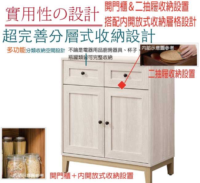 【綠家居】范辛頓 時尚2.6尺二門二抽餐櫃/收納櫃