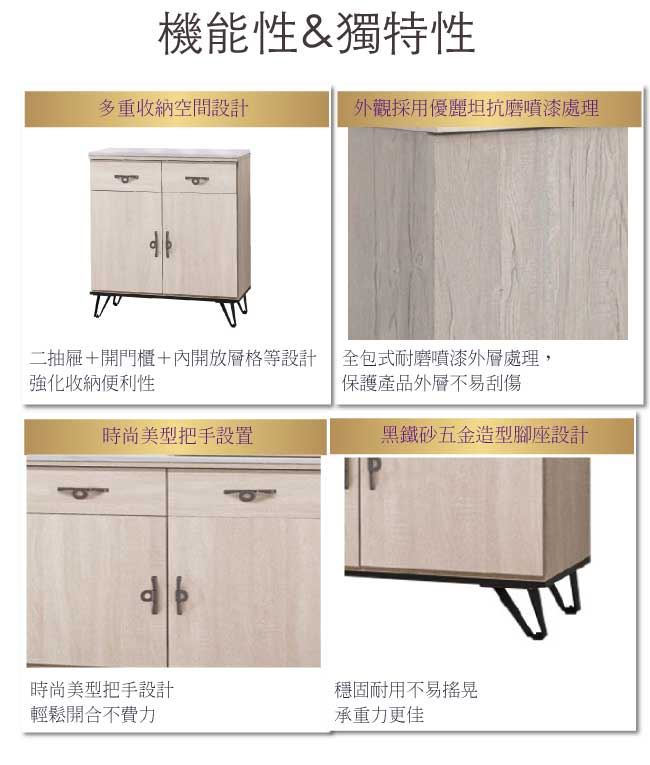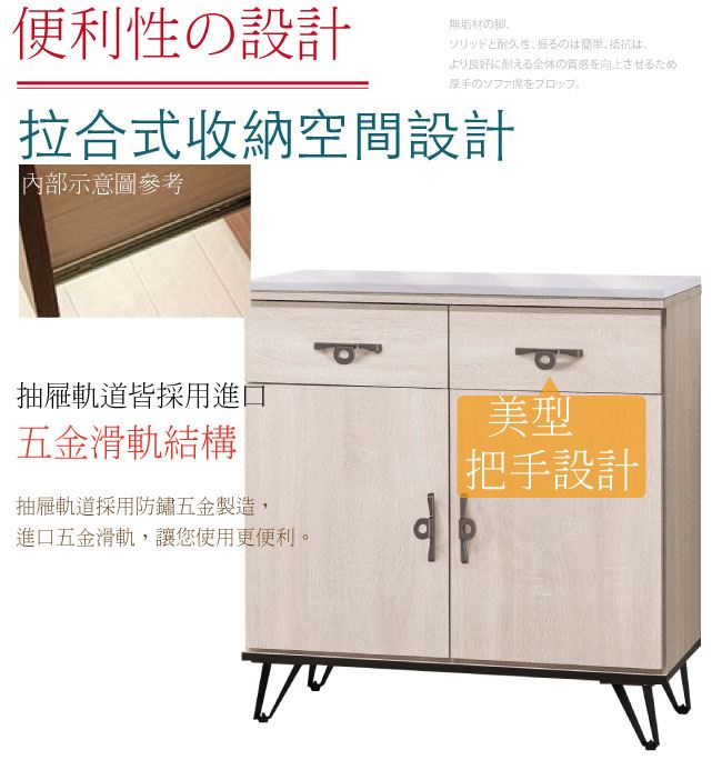 商品 介紹 | 【綠家居】曼塔2.7尺岩板低餐櫃/收納櫃 淺橡木紋色系+現代簡約風格+安心材質製造,整體採用防蛀木心板+黑鐵砂腳座+防夾手緩衝門片五金+五金滑軌結構+12mm高硬度岩板石桌面板等安心材質製造,產品外層採用防潮耐磨噴漆處理搭配採用開門櫃+二抽屜+內開放式層格等空間設計,全由專人配送到家,專業安心服務,替你省下更多時間! 【商品特色】 淺橡木紋色系+現代簡約風格+安心材質製造,使用放心+搭配居家更便利 採用防蛀木心板+黑鐵砂腳座+防夾手緩衝門片五金+五金滑軌結構+12mm高硬度岩板石桌面板等安心材質製造 產品外層採用防潮耐磨噴漆處理 搭配採用開門櫃+二抽屜+內開放式層格等空間設計 此商品不需要DIY組立,此商品為組立後之成品 全由專人配送到家,專業安心服務,替您省下更多時間 |