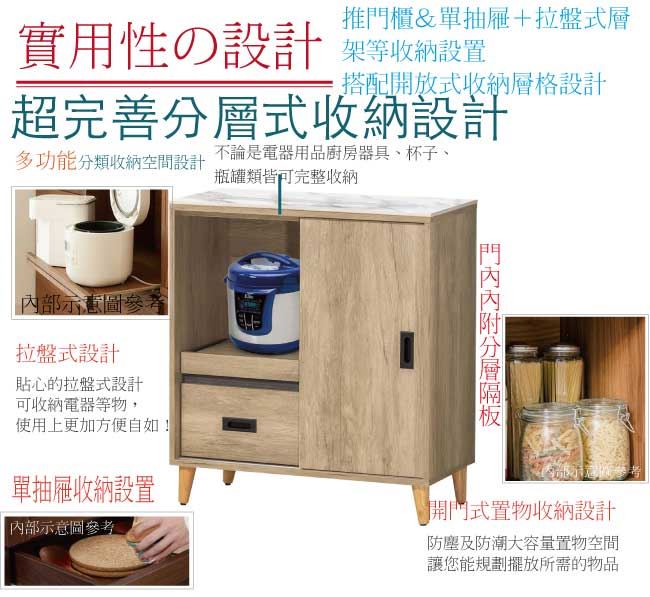 【綠家居】天普推門2.7尺單抽岩板低餐櫃/收納櫃
