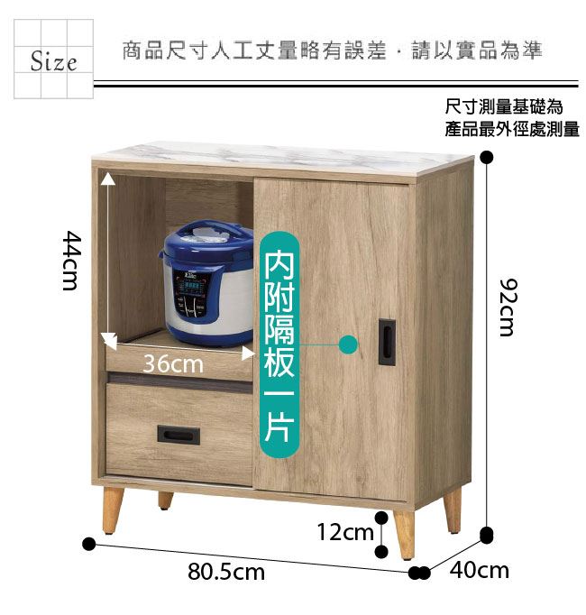 尺寸:(寬)80.5(深)40(高)92公分 ◆材質: 材質:防蛀木心板+防潮實木腳座+五金滑軌結構+12mm高硬度岩板石桌面板 噴漆:防潮耐磨噴漆處理