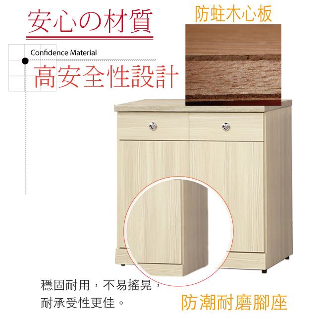 材質 | ◆產品名稱:【綠家居】米瑪2.7尺二門二抽餐櫃/收納櫃 尺寸:(寬)81.3x(深)43(高)82/公分 ◆材質: 材質:防蛀木心板+防刮耐磨腳座+五金滑軌結構+仿雲紋石紋木質桌面板 噴漆:防潮耐磨噴漆處理 |