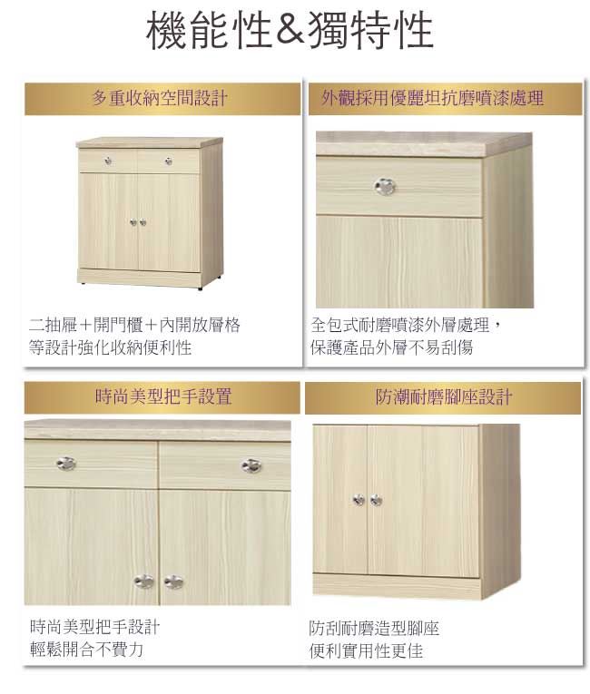 【綠家居】米瑪2.7尺二門二抽餐櫃/收納櫃