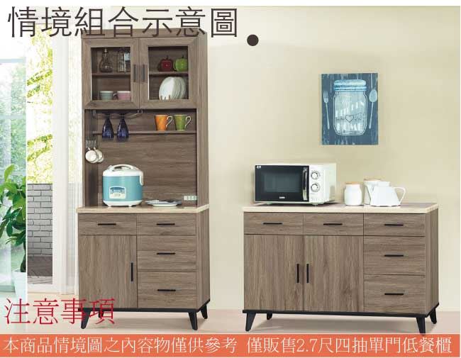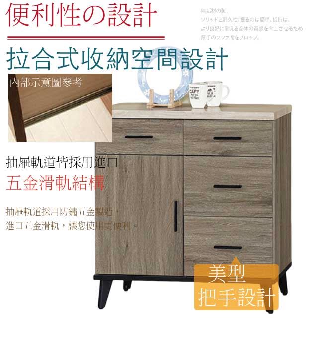 【綠家居】米丘灰橡2.7尺單門四抽餐櫃/收納櫃
