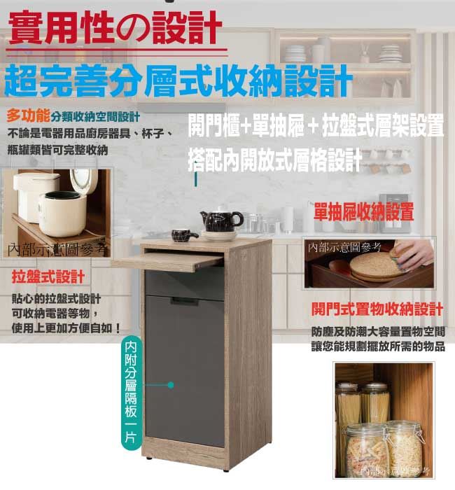 【綠家居】凱溫斯1.2尺拉盤單抽低餐櫃/收納櫃(三色可選)