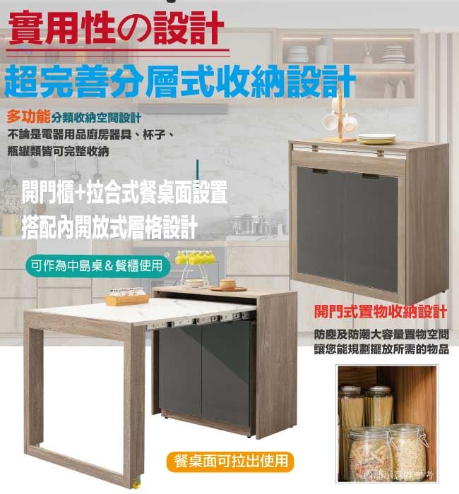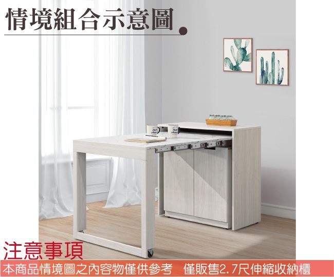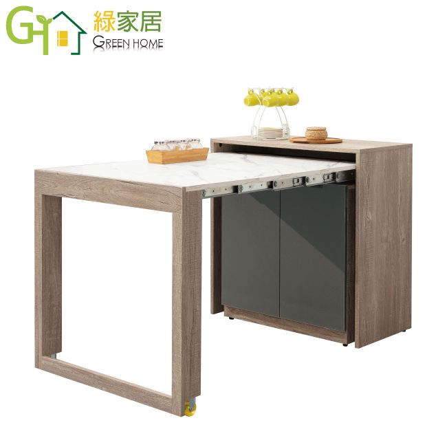 【綠家居】凱溫斯2.7尺桌面伸縮餐櫃/中島桌(三色可選+可拉出桌面使用)