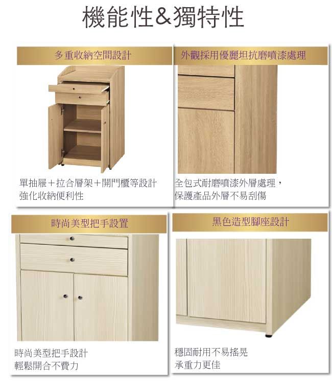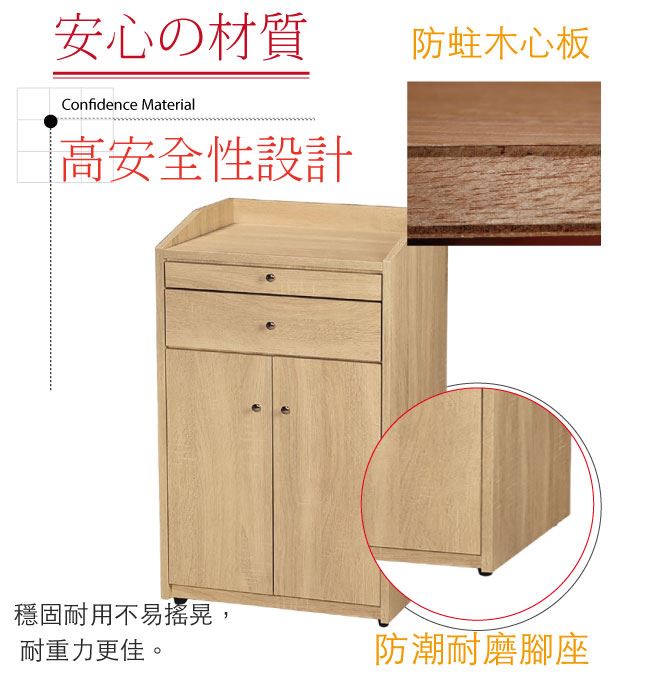 材質 | ◆產品名稱:【綠家居】寶安1.7尺多功能餐櫃/收納櫃(四色可選) 尺寸:(寬)51x(深)39(高)83/公分 ◆材質: 材質:防蛀木心板+防刮耐磨腳座+五金滑軌結構 噴漆:防潮耐磨噴漆處理