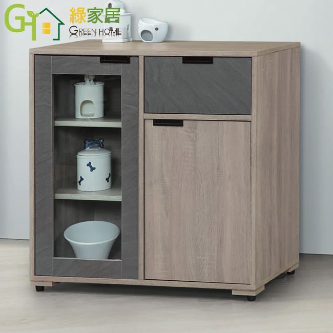 【綠家居】卡克斯2.7尺二門單抽低餐櫃