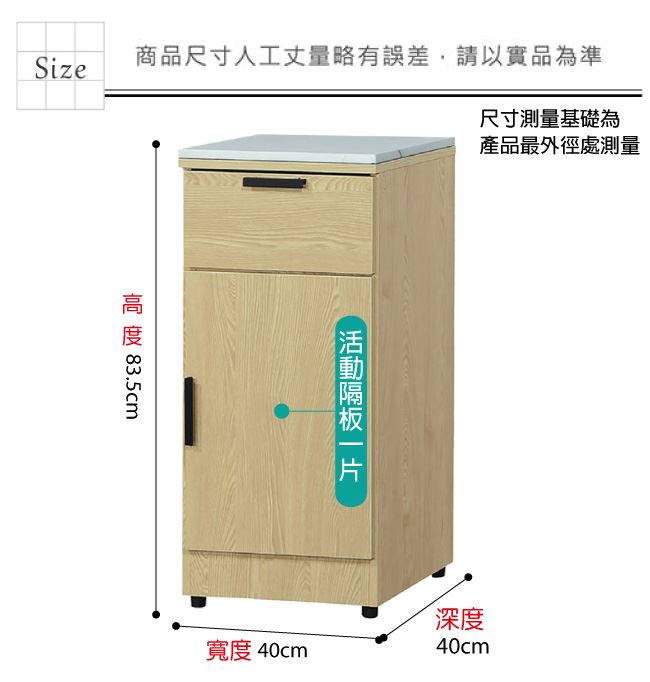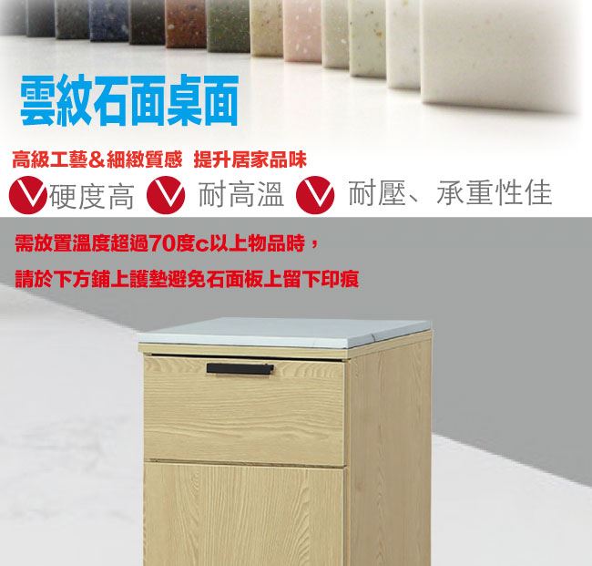 材質 | ◆產品名稱:【綠家居】路思樂1.3尺雲紋石面低餐櫃 餐櫃尺寸:(寬)40x(深)40(高)83.5公分 ◆材質: 材質:防蛀木心板+防潮耐磨腳座+防夾手緩衝門片五金+五金滑軌結構+12mm雲紋石面桌面板 噴漆:防潮耐磨噴漆處理