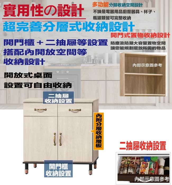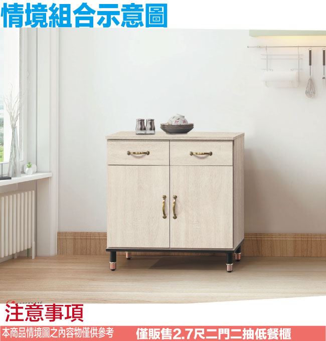 【綠家居】洛里奇2.7尺二門二抽低餐櫃