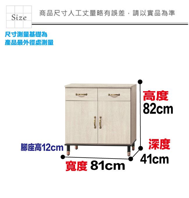 材質 | ◆產品名稱:【綠家居】洛里奇2.7尺二門二抽低餐櫃 尺寸:(寬)81x(深)41(高)82/公分 ◆材質: 材質:防蛀木心板+烤漆金屬腳座+五金滑軌結構 噴漆:防潮耐磨噴漆處理 |