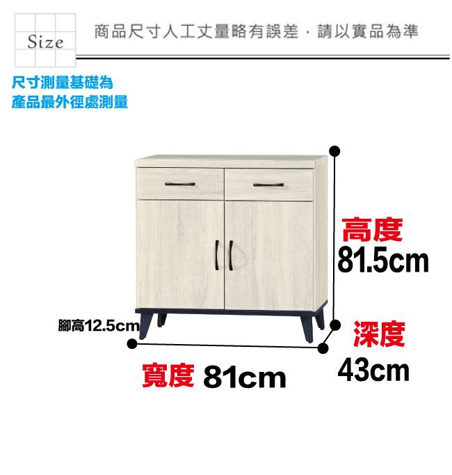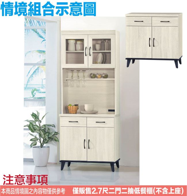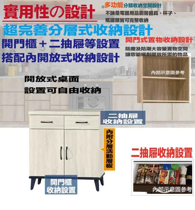 【綠家居】楚門淺橡2.7尺二門二抽低餐櫃