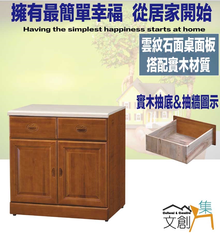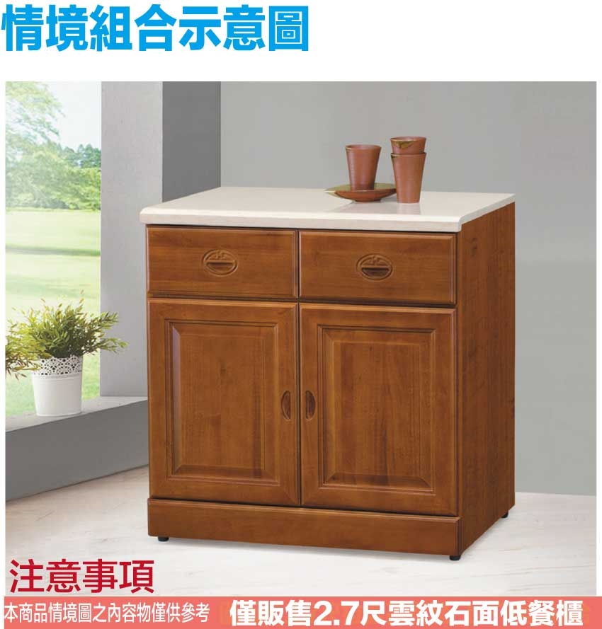 - ◆產品名稱:【綠家居】羅西2.7尺實木雲紋石面低餐櫃
