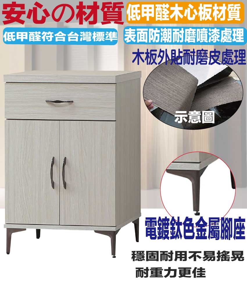 - ◆產品名稱:【綠家居】克亞2尺二門單抽低餐櫃