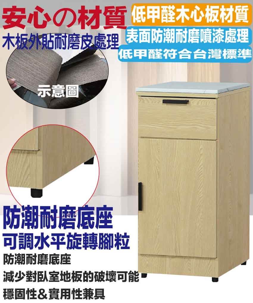 防蛀木心板+防潮耐磨底座(可調高低水平)+防夾手緩衝五金+2cm雲紋石面桌面板等安心材質製造